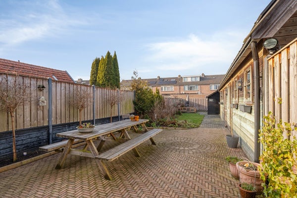 Gelegen in een kindvriendelijke omgeving ligt deze uitgebouwde twee-onder-een-kap woning met vrijstaande houten garage met in het verlengde daarvan een geïsoleerde ruimte met keukentje, met een zeer diepe achtertuin en achter in de de tuin een tuinhuis met barretje op een perceel met maar liefst 380 m² eigen grond.