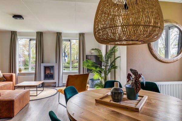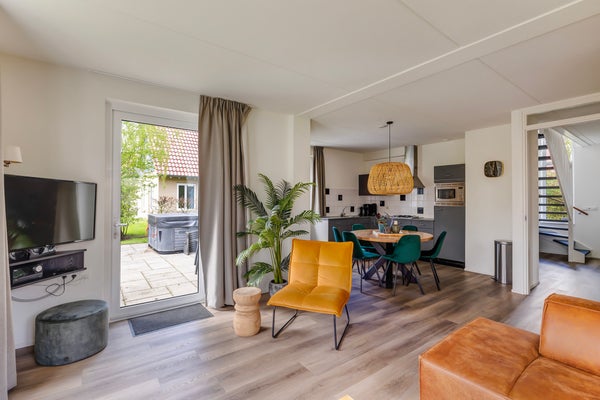 Deze luxueuze recreatiewoning, geschikt voor 6 of 8 personen op landgoed Timmerholt, ligt aan het water en een beschermd natuurgebied. Gelegen op een rustig punt aan het einde van de weg bij de ingang van het park en dichtbij het strandje met kano's, biedt de woning vrij uitzicht. De woning, type Axylia, beschikt over een sauna, een buitenjacuzzi (tot 1 februari 2025) en twee badkamers. De indeling omvat een ruime woonkamer, een open keuken, en vier slaapkamers, waarvan een met sauna. De verzorgde tuin heeft drie terrassen, inclusief een aan het water. De woning is gebouwd in 2007, voldoet aan de laatste bouwnormen, en is volledig gemeubileerd en gestoffeerd. Permanente bewoning is niet toegestaan; verhuur is mogelijk.