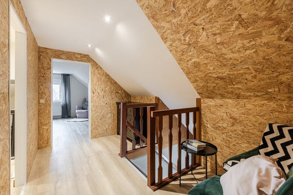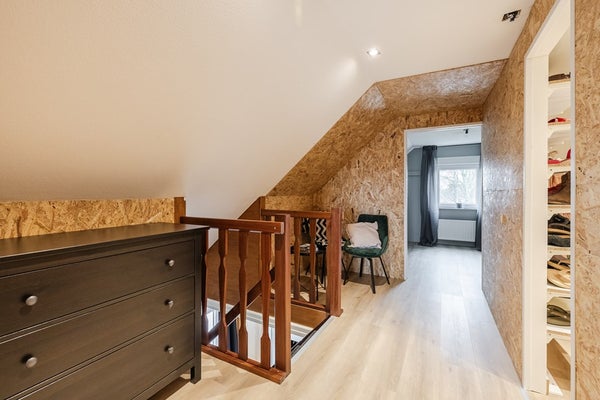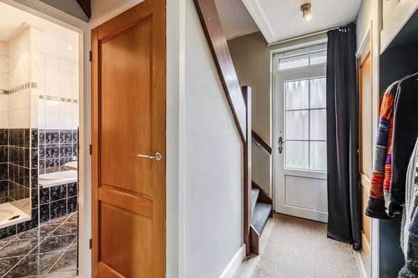Op de eerste verdieping zijn twee slaapkamers met rolluiken en een ruime overloop met inloopkast. Daarnaast is er nog extra bergruimte op zolder.