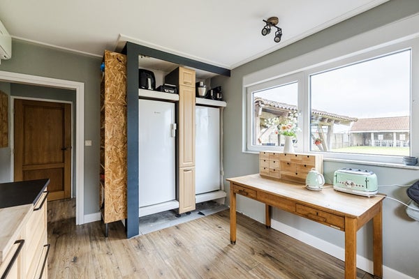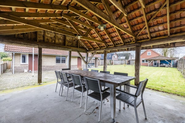 Buiten zijn er meerdere overkappingen en een grote, royale schuur met zolderruimte. De woning is duurzaam uitgevoerd met vloerverwarming op de begane grond, een warmtepomp, 18 zonnepanelen en beschikt over energielabel A++.