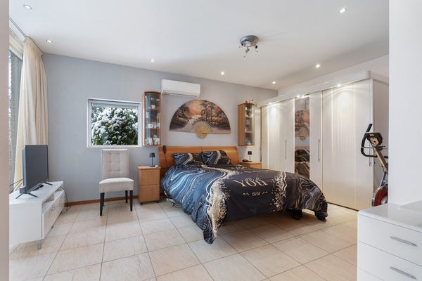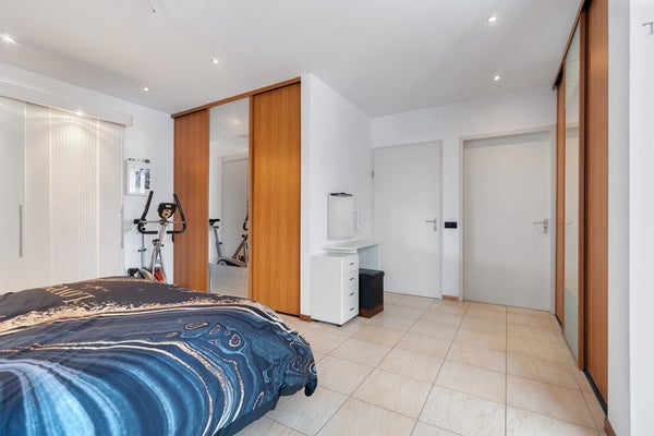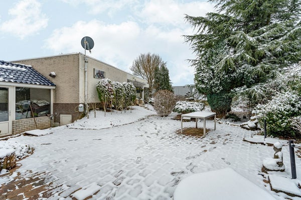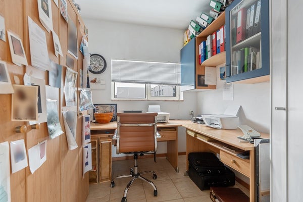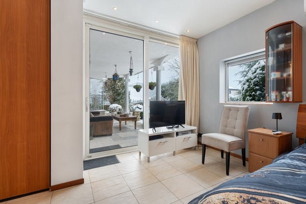 De woning beschikt over een ruime ouderslaapkamer met vaste kasten en toegang tot het terras, een tweede slaapkamer en een riante badkamer met jacuzzi, douche en toilet. Daarnaast is er een kantoorruimte, ideaal voor werken aan huis. Het souterrain biedt ontspanning met een sauna en toegang tot het tussenportaal richting de ruime werkplaats/hal.