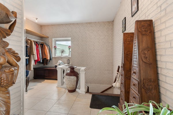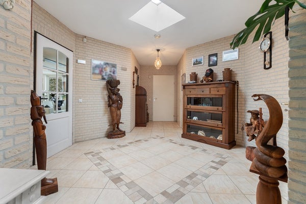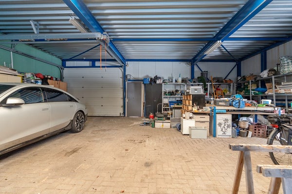 De werkplaats ( 149m2) zelf is een groot pluspunt van dit object. Deze vrijstaande hal is degelijk gebouwd met geïsoleerde sandwichpanelen op een gemetselde voet en beschikt over een lichtstraat die zorgt voor prettig daglicht tijdens het werken. Dankzij de praktische roldeur is de ruimte goed bereikbaar voor voertuigen en materiaal, terwijl de klinkervloer sterk en onderhoudsvriendelijk is. De hal biedt volop mogelijkheden voor opslag, productie of het stallen van bedrijfswagens en machines. Door de directe verbinding met de woning via het tussenportaal werk je hier comfortabel en efficiënt, met alle voorzieningen binnen handbereik.