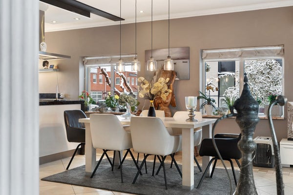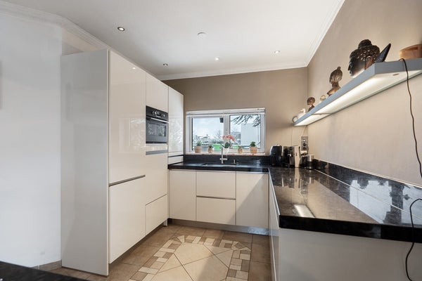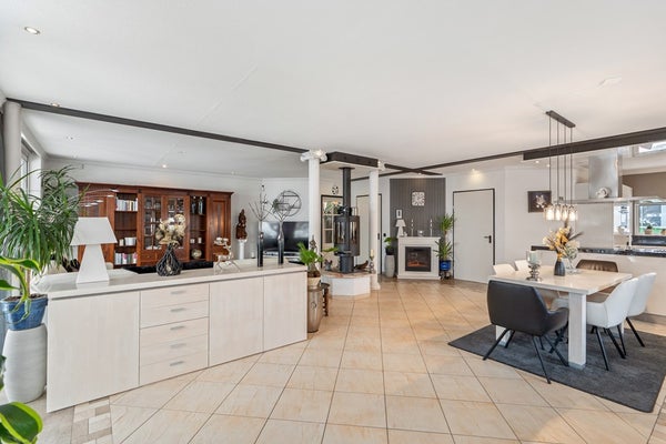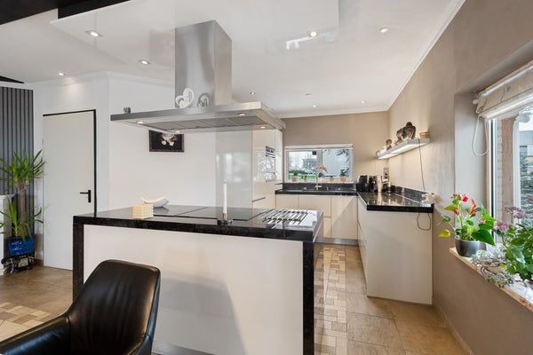 De woning is met zorg gebouwd en onderhouden door de eerste eigenaar, waarbij kwaliteit en duurzaamheid centraal stonden. Binnen valt direct de royale entree op, die toegang geeft tot een lichte living met schuifpui en een luxe open keuken met kookeiland. De keuken is recent voorzien van moderne inbouwapparatuur, waardoor koken en samenkomen hier moeiteloos samengaan. De praktische bijkeuken met technische ruimte en keukenblok maakt het geheel compleet.