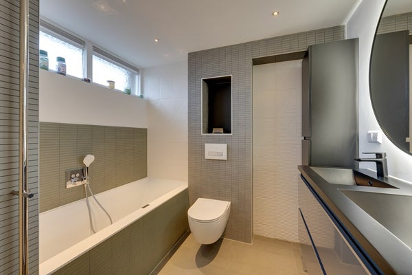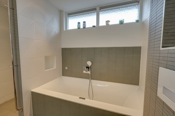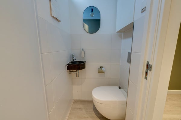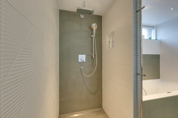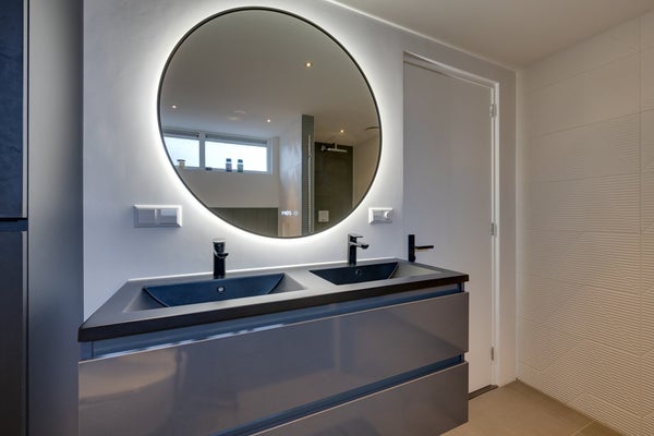 De luxe badkamer is stijlvol afgewerkt en uitgerust. Hij beschikt over een inloopdouche, ligbad en dubbel wastafelmeubel. Ook is er een tweede toilet aanwezig en een mooie spiegel met ledverlichting en verwarming. Ook zo een hekel aan natte handdoeken? Dat is hier niet nodig, want de badkamer beschikt over een moderne, verwarmde handdoek radiator. Ideaal!