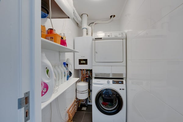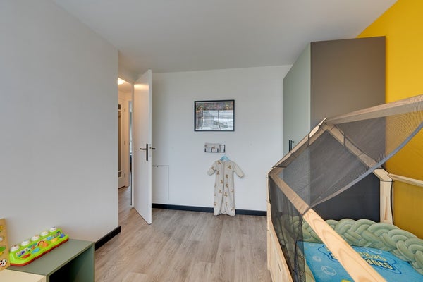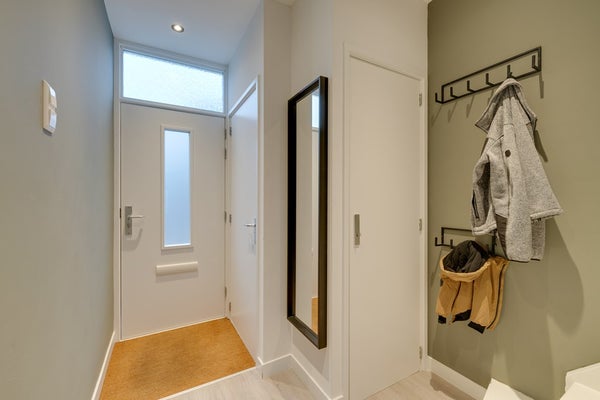 Ook op deze verdieping geniet je van vloerverwarming, wat bijdraagt aan het hoge comfortniveau. Tevens vind je hier een berging waar de hybride warmtepomp, mechanische ventilatie met vochtsensor en de wasmachine en droger geplaatst zijn.