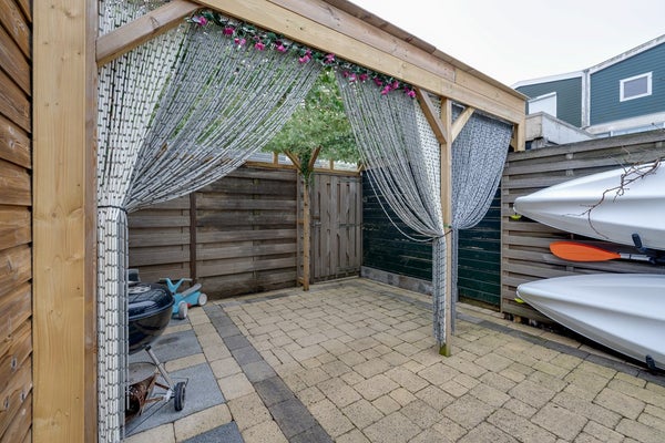 De achtertuin is verzorgd en praktisch ingericht en vormt een fijne verlenging van de woonruimte. Dankzij de overkapping is het hier het hele jaar door prettig vertoeven. Achter in de tuin bevindt zich een schuur, ideaal voor het stallen van fietsen en het opbergen van tuinspullen. De tuin is gelegen op het oosten.