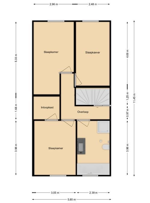 - De tussenwoning heeft een woonoppervlakte van 160 m² en beschikt over 7 kamers, waarvan 5 slaapkamers;