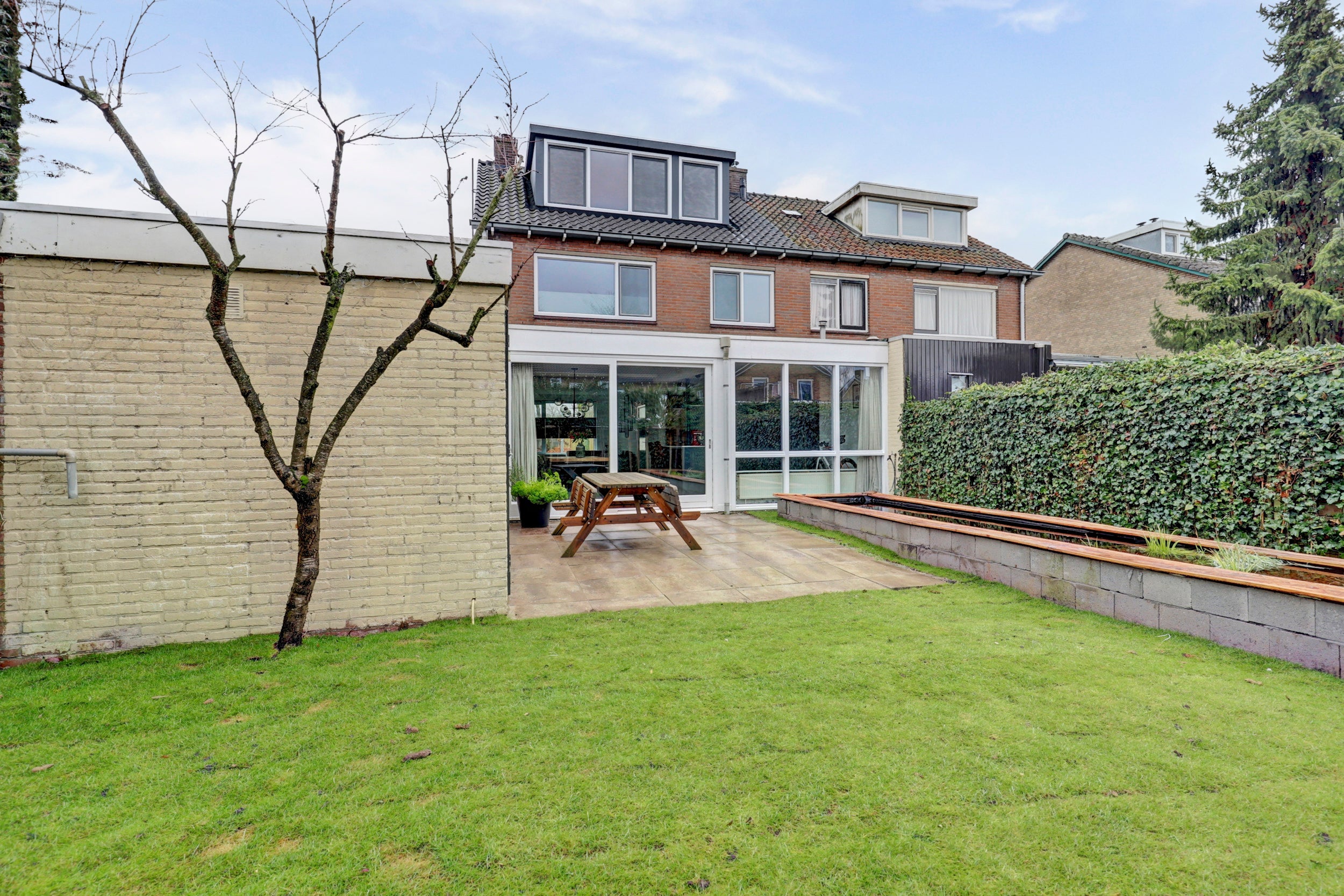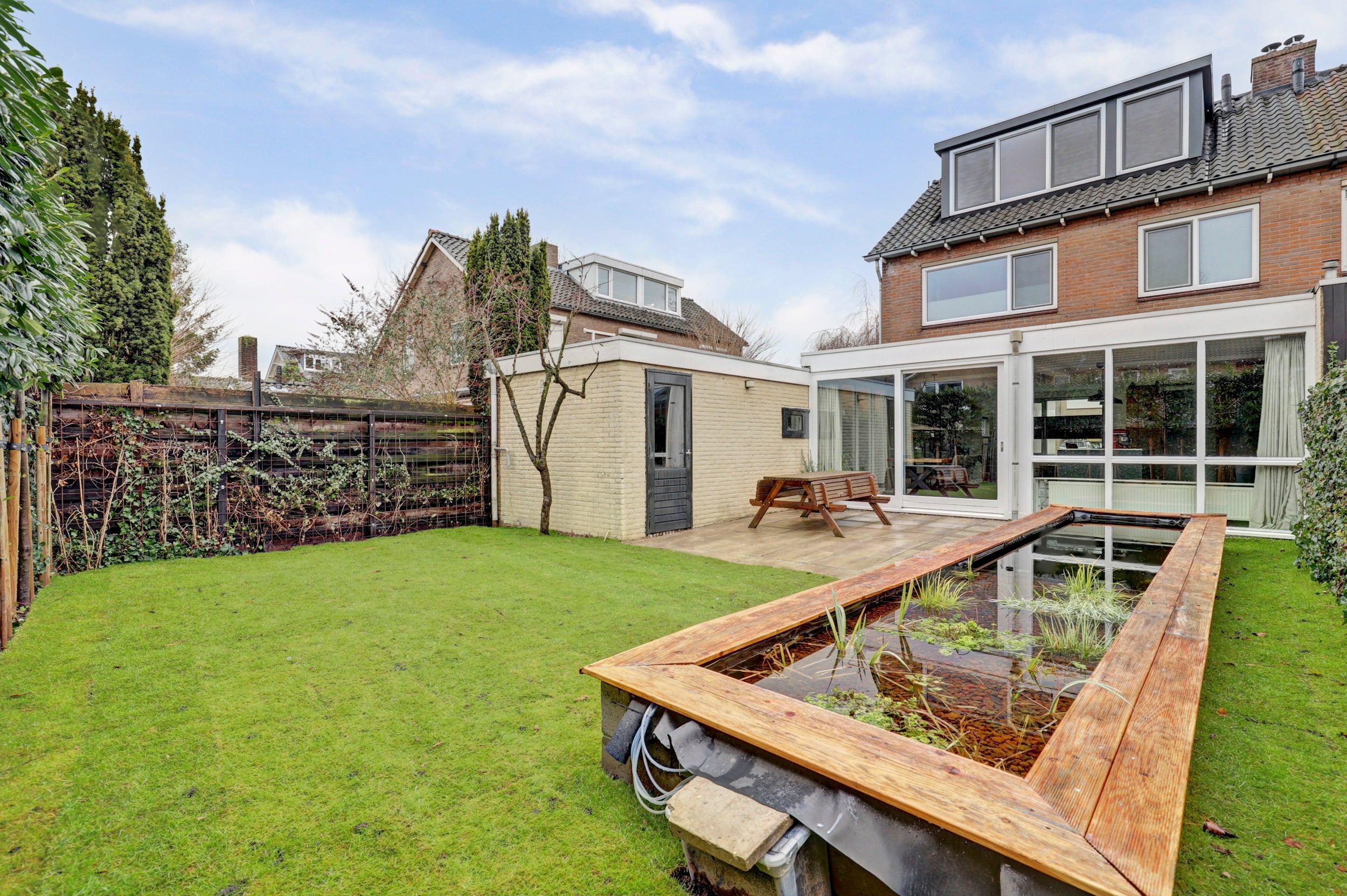 De twee-onder-een-kapwoning aan de Wethouder Broekmanstraat 27 in Weurt is volledig gemoderniseerd en biedt een comfortabele thuisbasis voor gezinnen. Met een woonoppervlak van 141 m² en een perceeloppervlak van 272 m², beschikt deze woning over drie slaapkamers en een ruime, moderne keuken met kookeiland dat van alle gemakken is voorzien. De uitbouw vergroot de leefruimte aanzienlijk, en dankzij de brede schuifpui stroomt het licht naar binnen. De nette achtertuin op het westen met terras en zwemvijver biedt volop mogelijkheden voor ontspanning. De garage en eigen oprit zorgen voor voldoende parkeergelegenheid. Gelegen vlakbij Nijmegen, profiteer je van alle voordelen van een groene omgeving met snelle toegang tot voorzieningen.