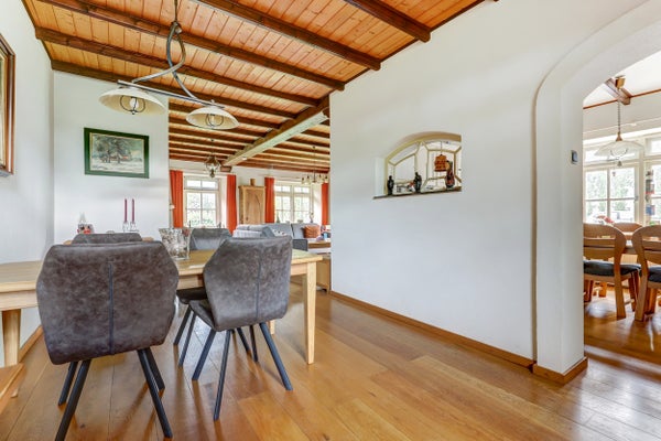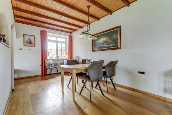 Vrij wonen in Weurt op een perceel van 8.180 m², deze unieke twee-onder-één kapwoning biedt veel mogelijkheden. De woning ligt aan een rustige weg met een vrij uitzicht en is geschikt voor levensloopbestendig wonen of als mantelzorgwoning. De begane grond heeft een ruime hal, een Z-woon- en eetkamer met houtkachel, een half open keuken, en toegang tot een bijkeuken. De aanbouw beschikt over een luxe overkapping en een mancave met keukenblok. Op de eerste verdieping zijn er vijf slaapkamers met prachtig uitzicht en een badkamer. De zolder is verwarmd en ideaal voor opslag. Buiten zijn er verschillende weides en een verzorgde tuin. De woning is goed bereikbaar en gelegen tussen Nijmegen en Beuningen.