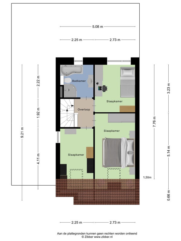• De tussenwoning heeft een woonoppervlakte van 104 m² en beschikt over 5 kamers, waarvan 4 slaapkamers;