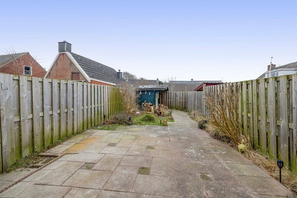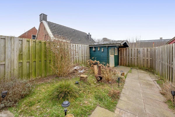 Diepe achtertuin op het zuiden van circa 20 m diep met een houten berging aan de achterzijde van het perceel.