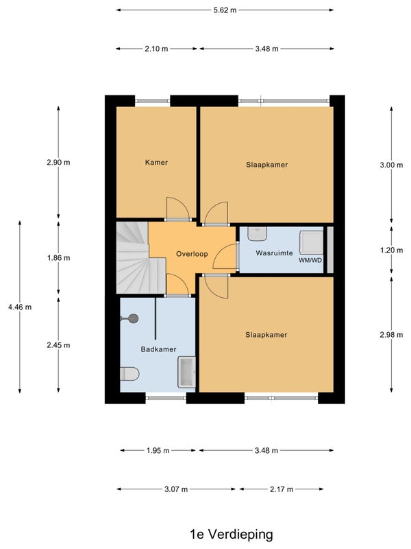 - De tussenwoning heeft een woonoppervlakte van 113 m² en beschikt over 5 kamers, waarvan 4 slaapkamers;