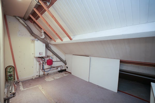 Middels een vaste trap is de zolderverdieping bereikbaar. Op de voorzolder bevinden zich de cv-ketel en de omvormer van de zonnepanelen. Daarnaast is hier een royale slaapkamer gerealiseerd, voorzien van een dakkapel die zorgt voor extra ruimte en een prettige lichtinval. Achter de knieschotten is volop bergruimte aanwezig.