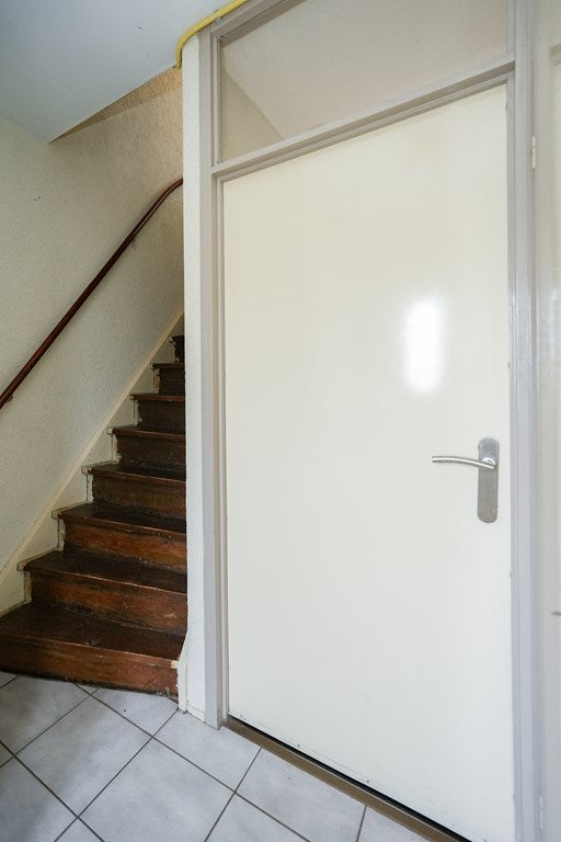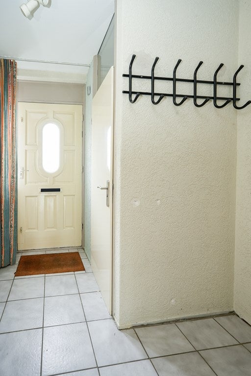 Via de voordeur betreedt u de hal, een nette en functionele entree van de woning. Hier bevinden zich de meterkast, het toilet en de trapopgang naar de eerste verdieping. Daarnaast is er voldoende ruimte voor een garderobe, zodat jassen en schoenen netjes opgeborgen kunnen worden.