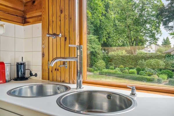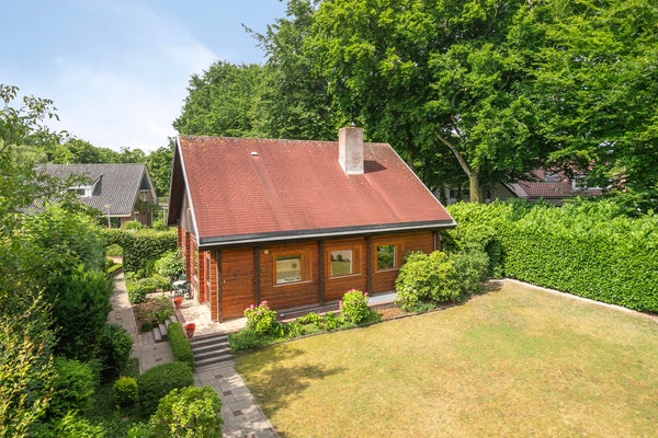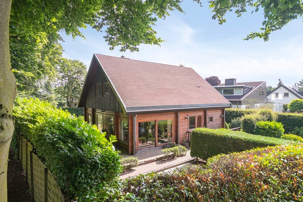 Dit unieke FINNHOUSE ligt in een groene oase aan de rand van een rustige wijk, nabij een beukenlaantje van meer dan 100 jaar oud. Het biedt de voordelen van het nabijgelegen winkelcentrum en het nationale bos Heerlijkheid Leur op 1,5 km. Het heeft een ruime garage voor twee auto’s, een betegeld pad naar een Zuidwest terras en een prachtig uitzicht op de tuin. Binnen vindt u een royale L-vormige woonkamer met open haard, een half open keuken, en een master bedroom met en-suite badkamer. Op de bovenverdieping zijn vier slaapkamers en een tweede badkamer. Het souterrain biedt extra opbergruimte en een werkkamer. De tuin is voorzien van een automatische sproei-installatie en heeft meerdere terrassen voor optimaal buitenleven.