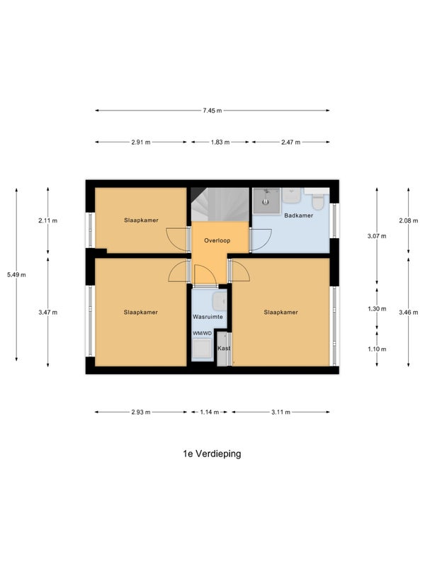 - De tussenwoning heeft een woonoppervlakte van 104 m² en beschikt over 5 kamers, waarvan 4 slaapkamers;