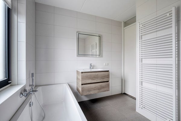 Aangekomen op de eerste verdieping is een ruime overloop met een drietal slaapkamers en de badkamer. Gesitueerd aan de voorzijde vinden we een royale masterbedroom en tweede passende slaapkamer. Aan de achterzijde is nog een volwaardige slaapkamer. De nette badkamer is voorzien van douchehoek met luxe regendouche, een ligbad, wastafelmeubel, toilet, vloerverwarming en een elektrische designradiator.