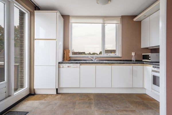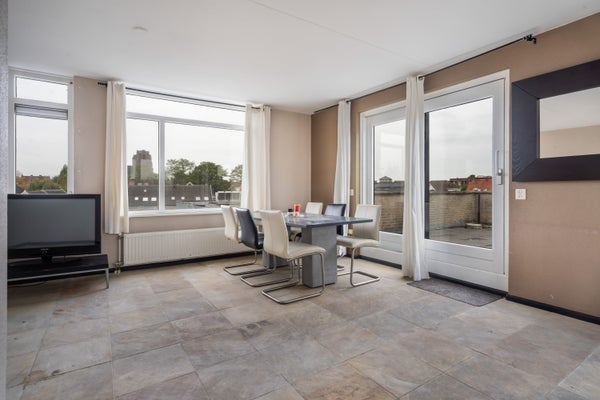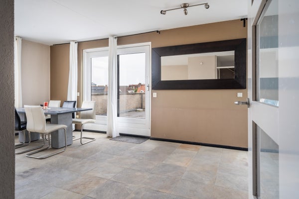 Deze ruime maisonnette aan de Zaagmolen 28 biedt een uitzonderlijk dakterras van 42 m², perfect voor het genieten van buitenruimtes en privacy. Gelegen op de tweede en derde verdieping beschikt de woning over een lichte woonkamer met een open keuken en toegang tot het dakterras. Op de tweede woonlaag zijn twee slaapkamers en een complete badkamer met ligbad, wastafel en tweede toilet te vinden. Een praktische berging op de eerste verdieping en een eigen garage op de begane grond maken het geheel compleet. Met een woonoppervlakte van 77 m² en voorzieningen zoals mechanische ventilatie en dubbelglas, is dit appartement een aantrekkelijke keuze. Gelegen in een rustige wijk nabij winkels en scholen, combineert het comfort van een appartement met de luxe van een privé buitenruimte.