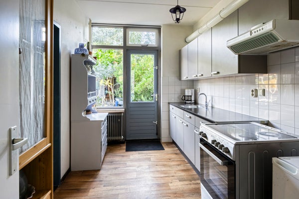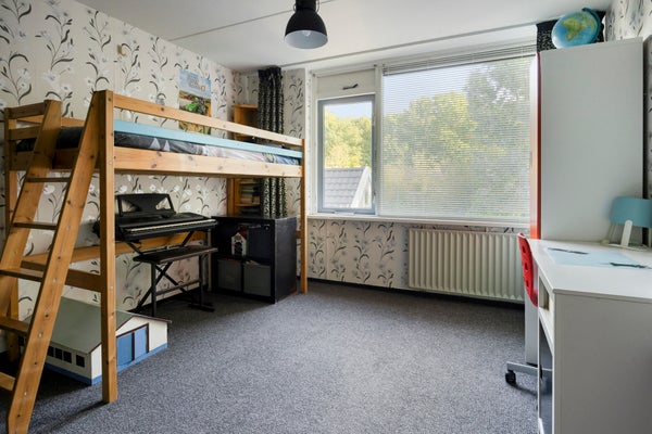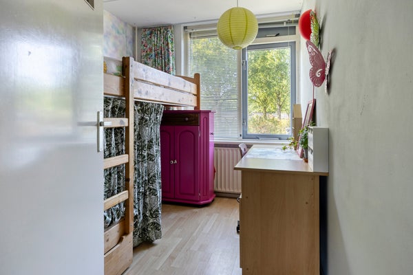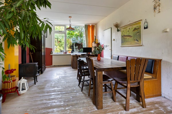 In een rustige woonstraat, aan groenvoorzieningen, bevindt zich deze verrassend ruime tussenwoning. De woning beschikt over 5 slaapkamers en een vrijstaande berging met overkapping, omgeven door een sfeervolle jungletuin. Zowel de voor- als achtertuin zijn recent vernieuwd, met een zonnige achtertuin (op het zuidoosten) en een achterom.
