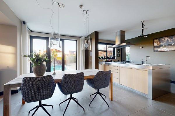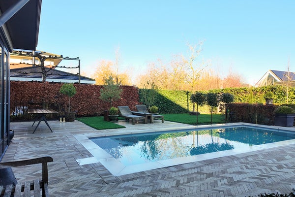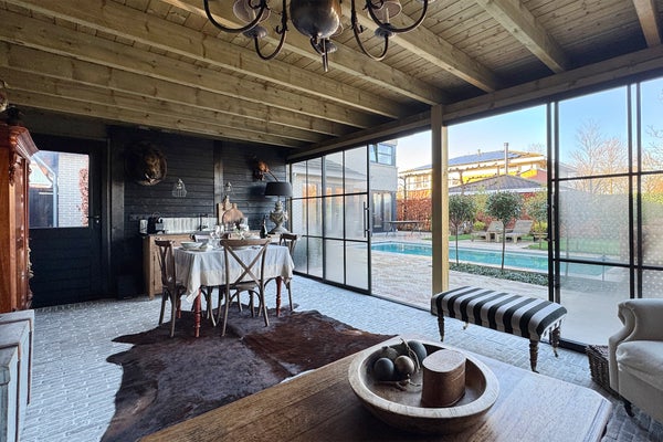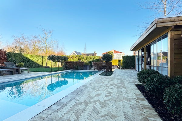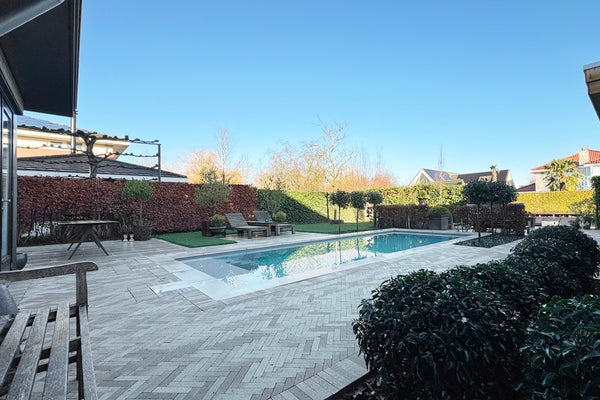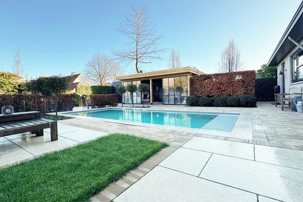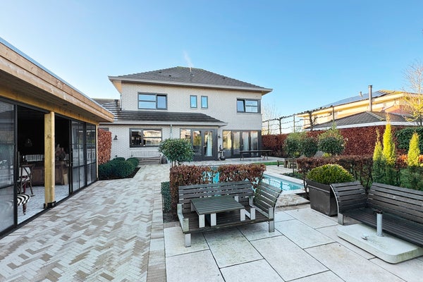 Deze perfect onderhouden vrijstaande villa biedt luxe en comfort op een oppervlakte van 228 vierkante meter. De woning heeft een lichte woonkamer, een luxe leefkeuken met een groot kookeiland, en een separaat kantoor. Op de eerste en tweede verdieping zijn vijf slaapkamers te vinden, inclusief een master bedroom met inloopkast. De luxe badkamer is compleet met een dubbele wastafel en vloerverwarming. Buiten geniet je van een fraai aangelegde tuin met een verwarmd zwembad en een poolhouse. Er is voldoende ruimte voor ontspanning en samenkomen met vrienden en familie. De villa is gelegen aan een rustige weg binnen een woonwijk en uitgerust met zonnepanelen en airconditioning. Parkeren kan op eigen terrein.