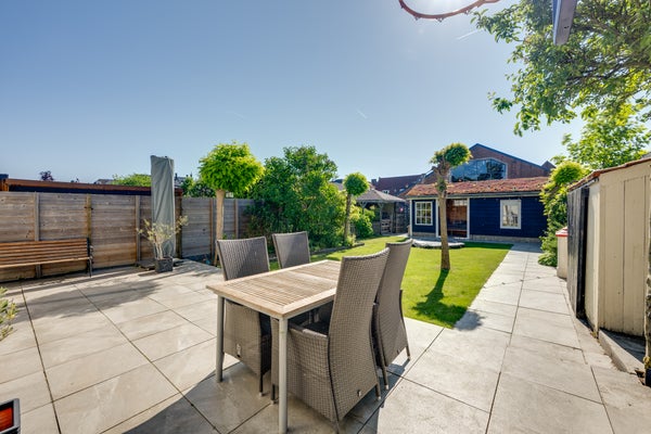 De tuin ligt op het zuidoosten, met privacy en uitzicht op het historische stadsbeeld. Met voorzieningen als vloerverwarming, zonnepanelen, dubbele beglazing en recent geschilderde achtergevel is dit huis ideaal voor gezinnen.
