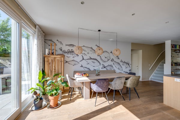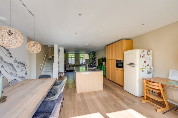 Het voormalige koetshuis is omgebouwd tot garage/berging. De royale woonkamer en moderne open keuken, met kookeiland en hoogwaardige apparatuur, zijn perfect voor een gezinsleven. Een slaapkamer en badkamer op de begane grond bieden levensloopbestendig wonen.