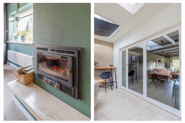 - CV-ketel, Open haard, Gedeeltelijke vloerverwarming, Houtkachel