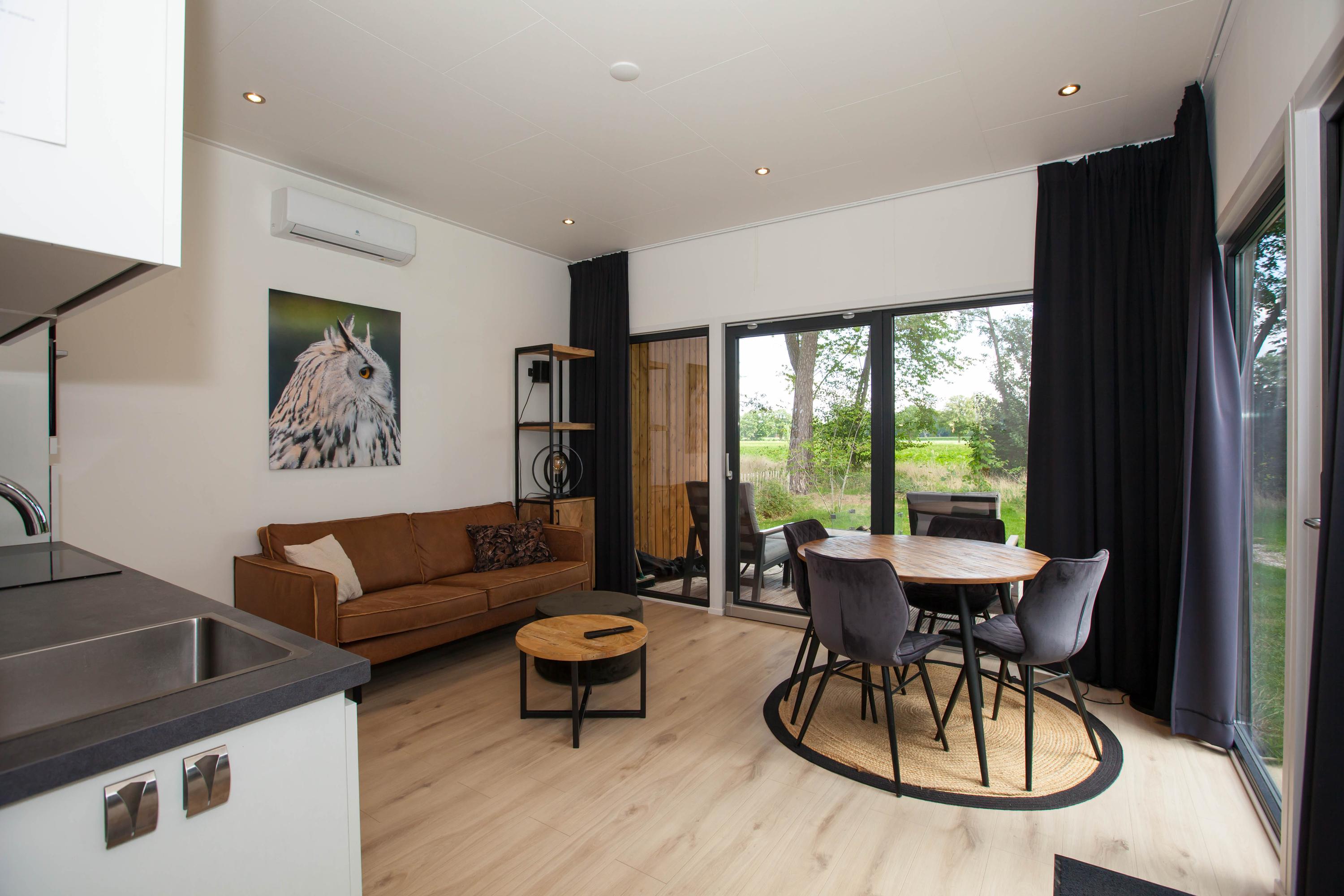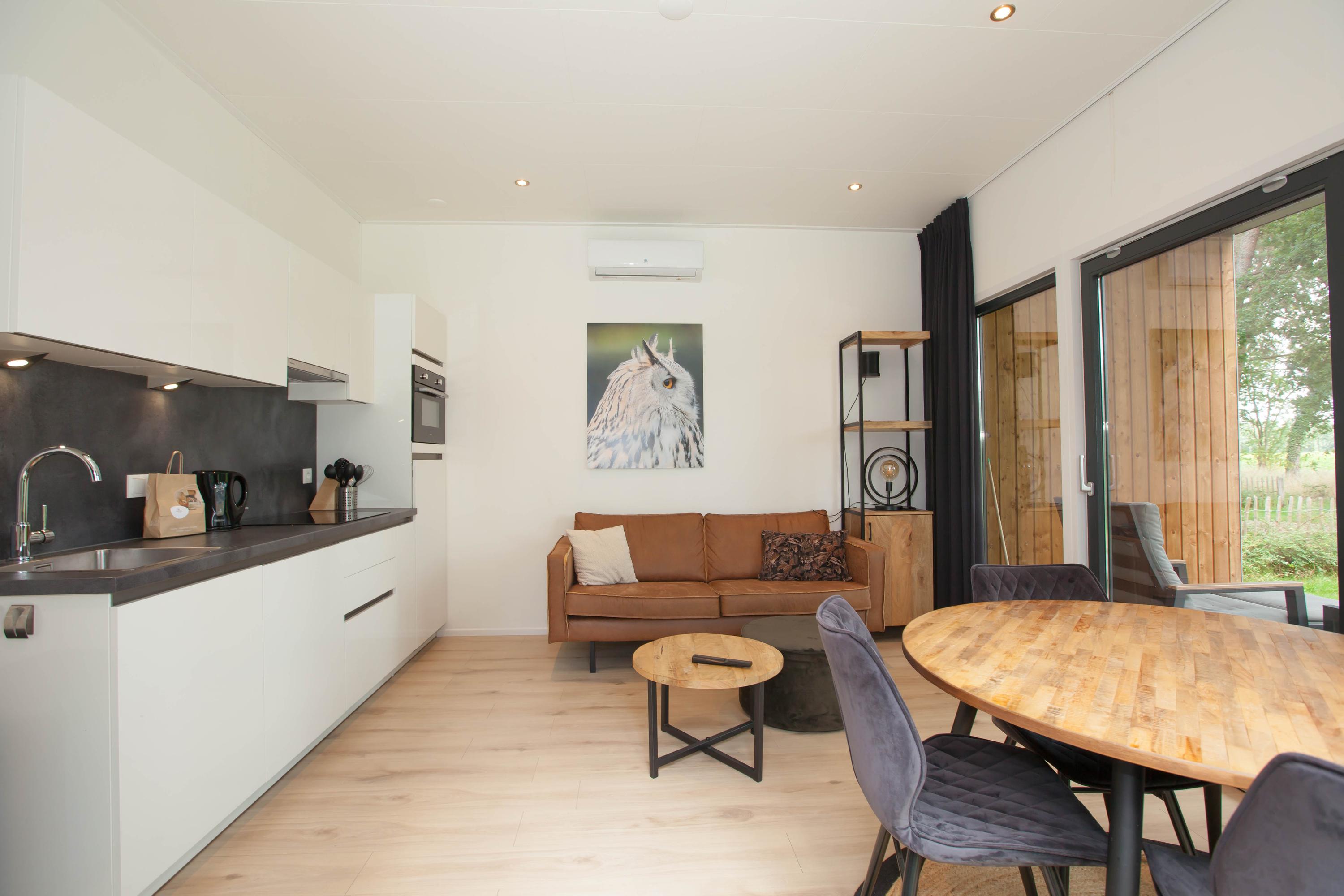 Deze moderne vakantievilla, gelegen in het rustige recreatiepark Hofparken Wiltershaar in Winterswijk, is perfect voor natuurliefhebbers en rustzoekers. Gebouwd in april 2023 op een perceel van 296 m², is deze vrijstaande woning instapklaar en biedt een lichte woonkamer met open keuken, één slaapkamer, en een nette badkamer. De villa beschikt over vloerverwarming, airconditioning en 8 zonnepanelen, wat zorgt voor comfort en duurzaamheid. Geniet van de omringende natuur en de beschikbaarheid van een sauna. Het park heeft onder andere een sfeervol restaurant en natuurlijke zwemvijvers, en ligt nabij het Duitse Münsterland en het centrum van Winterswijk. Deze vakantiewoning is een ideale uitvalsbasis voor ontspanning en recreatie.