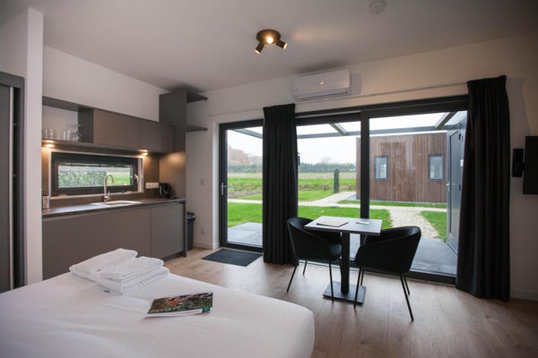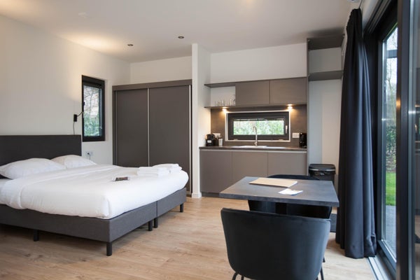 Deze moderne recreatiewoning "Amalia" biedt dubbel luxe comfort voor twee personen en heeft een terras met fraai uitzicht en veel privacy. Gelegen op het recreatiepark Wiltershaar in het buitengebied van Winterswijk, omgeven door natuur en nabij de Duitse grens. De woning beschikt over een ruime hotelkamer met zithoek en schuifpui, een keuken met inbouwapparatuur, en een badkamer met douche en toilet. Er is goede isolatie, zonnepanelen en airconditioning aanwezig. Met een woonoppervlakte van 62 m² en een perceel van 284 m², heeft de woning één slaapkamer en één badkamer. De hoofdtuin, met een zonneterras van 90 m², ligt op het zuiden. De woning is gasloos en heeft vloerverwarming. Parkeermogelijkheden zijn nabij.