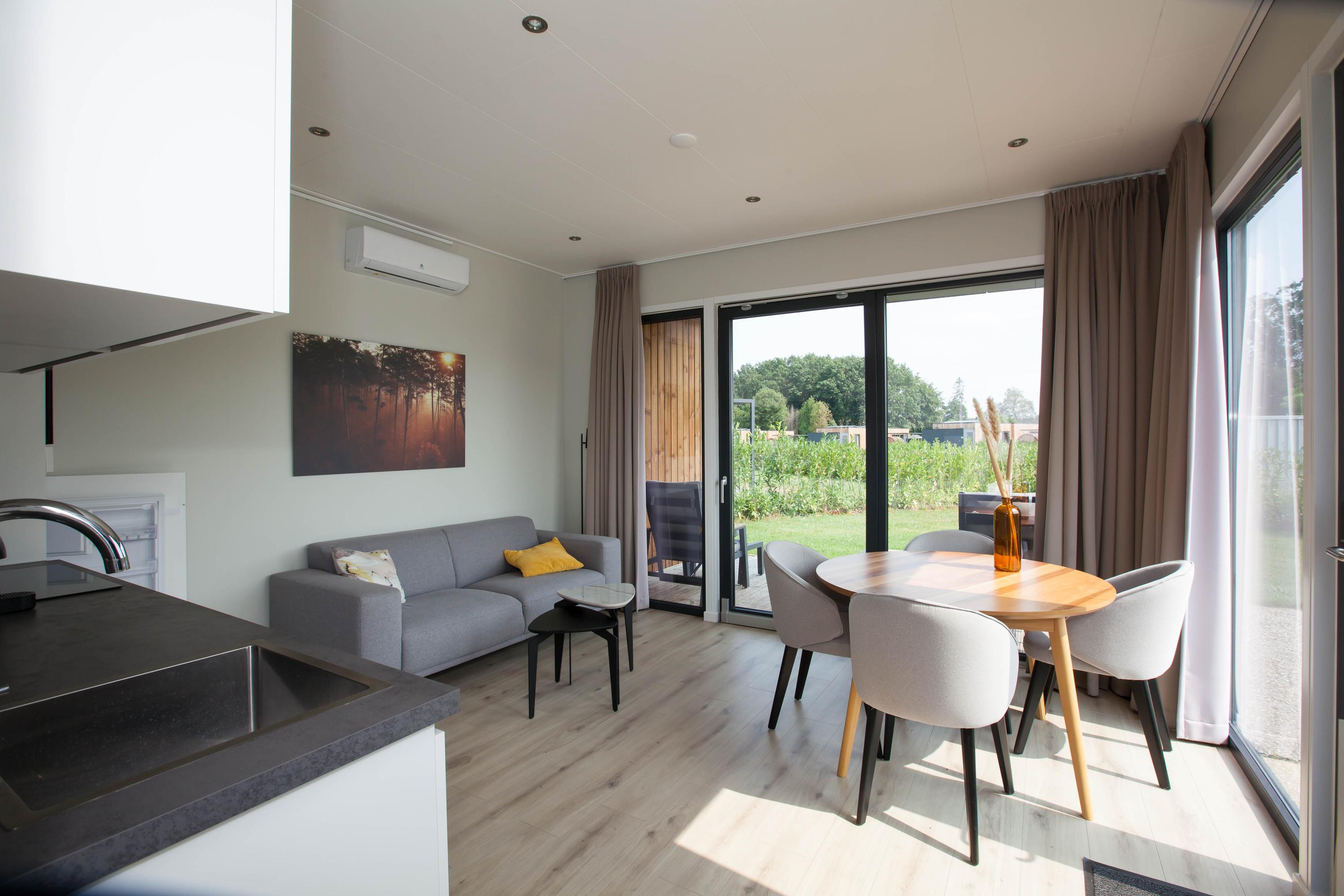 Deze vakantievilla in het recreatiepark ‘Hofparken Wiltershaar’ in Winterswijk is ideaal voor natuurliefhebbers. Omringd door natuur biedt het park een restaurant en natuurlijke zwemvijvers. De villa, gebouwd in april 2023, heeft een oppervlakte van 30 m² en staat op een perceel van 383 m². Binnen zijn er 2 kamers, met 1 slaapkamer en een moderne badkamer voorzien van douche, toilet en wastafelmeubel. De villa is volledig geïsoleerd en beschikt over vloerverwarming en airconditioning. Voor energie-efficientie zijn er 8 zonnepanelen op het dak. Aan de buitenzijde vind je een tuin rondom het huis, en op eigen terrein is parkeergelegenheid. De vraagprijs bedraagt € 200.000,-.
