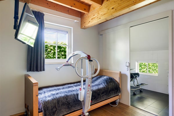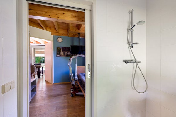 Deze vakantiewoning op Landalpark Orveltermarke is speciaal ingericht voor gasten met lichamelijke beperkingen. De eigenaar heeft aanpassingen gedaan voor een gezinslid met zware beperkingen, inclusief tilliften en een speciale douchestoel, terwijl er zelfs een tillift bij de jacuzzi is. De woning is niet beschikbaar voor verhuur, maar kan dat eventueel wel zijn.