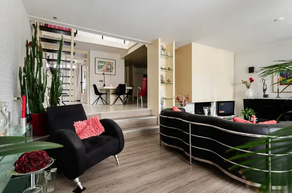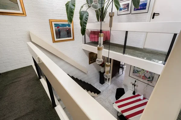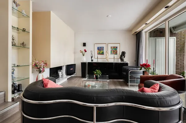 Deze ruime, lichte splitlevel woning aan de Essenlaan 55 in Woerden biedt een unieke woonervaring aan het water. De speelse indeling met verschillende niveaus voegt karakter toe, terwijl de lager gelegen woonkamer prachtig uitzicht biedt op de zonnige tuin en het water. De begane grond omvat een open keuken met moderne apparatuur, een praktische bergruimte en een gezellige woonkamer met vloerverwarming en open haard. Op de eerste verdieping bevinden zich vier slaapkamers en een complete badkamer. De tuin op het zuidwesten zorgt voor veel privacy en is een ideale plek om van de zon te genieten. De garage is uitgerust met voorzieningen en er is een eigen parkeerplaats. Dichtbij winkels, scholen en uitvalswegen, deze woning is een bezoek waard.