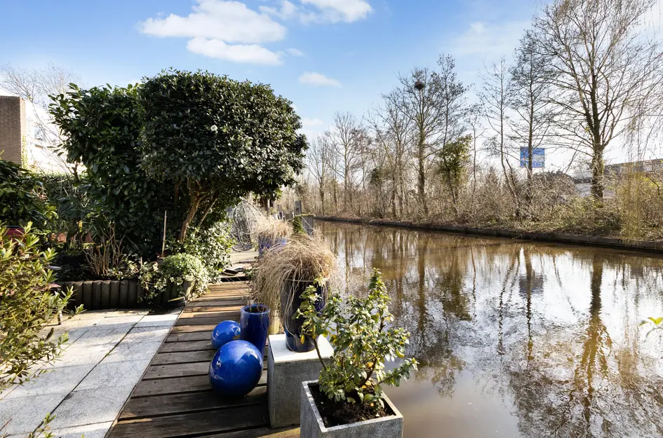 Deze ruime, lichte splitlevel woning aan het water aan de Essenlaan 55 in Woerden biedt een speelse indeling en een zonnige tuin op het zuidwesten. Vanuit de lagere woonkamer geniet u van een prachtig uitzicht op de tuin en het water, terwijl de open keuken iets hoger is gesitueerd, wat zorgt voor een ruimtelijk gevoel. De entree leidt naar een hal met toilet en een open keuken, uitgerust met moderne apparaten. De garage is bereikbaar van binnen en buiten en heeft elektra, water en verwarming. Op de eerste verdieping vindt u vier (slaap)kamers en een complete badkamer. De balkon van de twee slaapkamers aan de achterzijde strekt zich over de gehele breedte uit. Met een ideale ligging nabij winkels en scholen en uitstekende uitvalswegen, is deze woning een unieke kans. Maak snel een afspraak voor een bezichtiging!