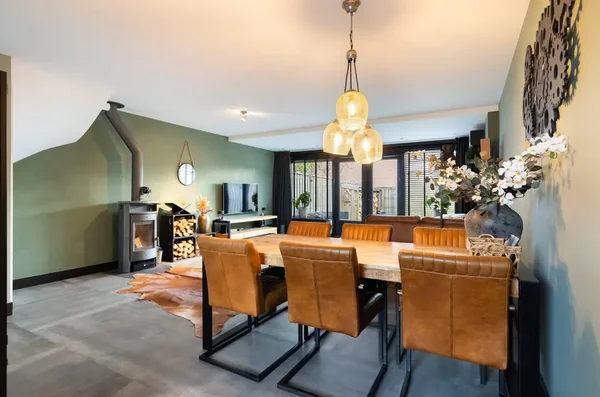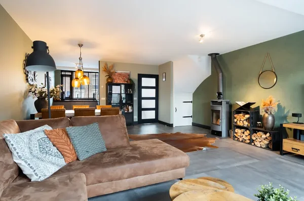 De halfopen keuken (2021) aan de voorzijde is compleet uitgerust met moderne inbouwapparatuur; ingebouwde koelkast, 3-laden vriezer, 4-pits inductie kookplaat, afzuigkap, combimagnetron en vaatwasser. De woonkamer is voorzien van airco (Mitsubishi) voor het verwarmen in de wintermaanden en koelen in de zomer. Tevens is er een Fireplace houtkachel welke in zeer korte tijd de complete woonkamer verwarmd.