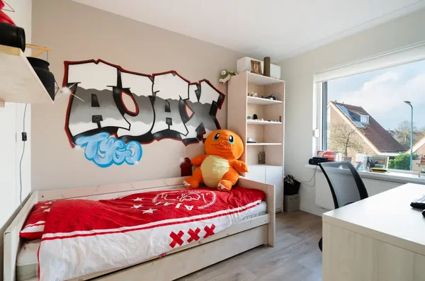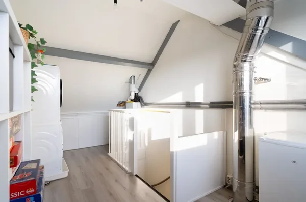 Via een vaste trap bereik je de zolderverdieping. Op de voorzolder bevinden zich extra bergruimte, aansluitingen voor de wasmachine en droger, een wasbak met warm/koud water en de opstelplaats voor de CV-ketel (2018). De zolderkamer is heerlijk licht dankzij een dakraam én een brede dakkapel met kunststof kozijnen over de hele breedte van de woning.