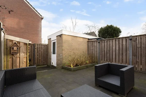 De zonnige achtertuin op het zuiden is een heerlijke plek om te ontspannen. Achter in de tuin staat een vrijstaande stenen berging met elektra en er is een handige achterom. Aan de gehele voorzijde en boven aan de achterzijde van de woning zijn rolluiken geplaatst. Deels elektrische en deels handmatige bediening. Parkeren kan eenvoudig in de directe omgeving.