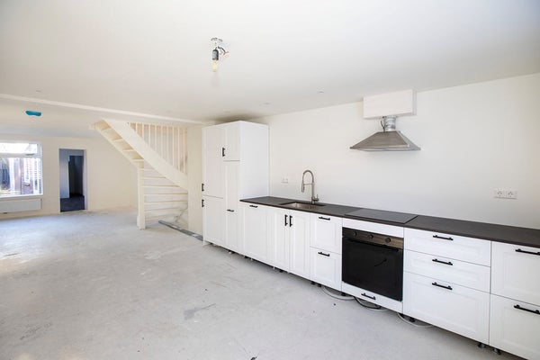 De woning is recent gemoderniseerd en beschikt over een nieuwe inbouwkeuken en een moderne badkamer. De ruime en lichte woonkamer vormt het hart van het huis en is voorzien van een open houten trap naar de verdieping, wat zorgt voor een speelse en ruimtelijke uitstraling.