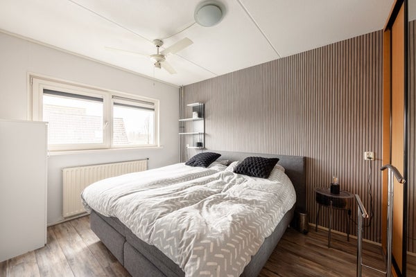 Via een vaste trap kom je op de tweede verdieping met nog eens drie slaapkamers, met voor en achter een dakkapel. Er is een nieuwe hybridepomp (2025) en de cv-ketel is van 2023. Ook is er nog een kleine vliering waar je wat spullen kwijt kunt.