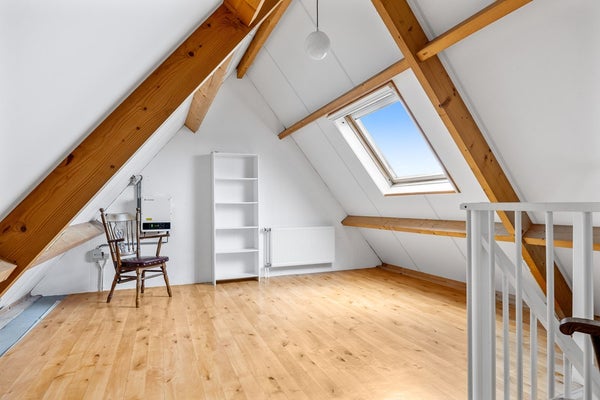 Een vaste trap leidt naar de ruime zolderruimte met groot dakraam. Hier bevindt zich tevens de omvormer van de zonnepanelen. Deze verdieping heeft voldoende stahoogte en biedt de mogelijkheid voor het maken van een extra slaapkamer.