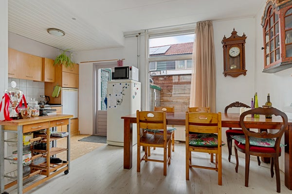 Ontdek de charmante sfeer van de jaren '20 in de woning aan de Frobelstraat 3. Deze starterswoning heeft veel mogelijkheden en bevindt zich in een rustige, groene buurt van Wormerveer. De keuken is handig aan de achterzijde gelegen en de woonkamer is ruim genoeg voor zowel een eet- als zithoek. Via de achterdeur kom je in de stadstuin met een comfortabele overkapping. Op de eerste verdieping zijn er drie slaapkamers en een verzorgde badkamer met alle benodigde voorzieningen. De woning heeft een woonoppervlak van 71 m² en een perceeloppervlak van 66 m². De nabijheid van voorzieningen zoals winkels en het station van Wormerveer maakt het een ideale plek voor gezinnen en forenzen.