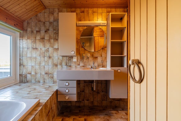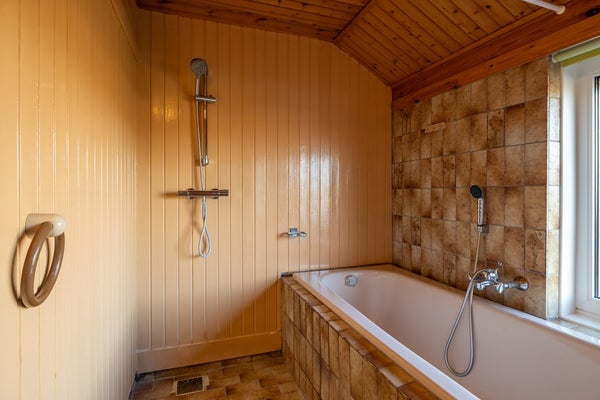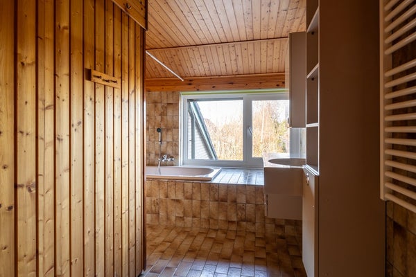• Badkamer met douche, bad, wastafel en sauna