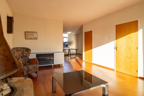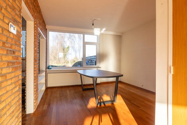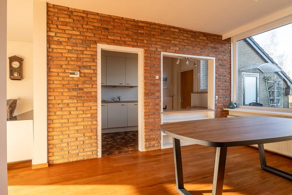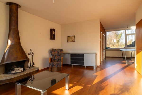 Via de entree komt u in de hal met trapopgang en toilet. De woonkamer is licht en ruim opgezet en biedt een gezellige sfeer dankzij de open haard – een fijne plek voor lange avonden. De open verbinding met de eetruimte zorgt voor een prettig geheel met uitzicht op de tuin.