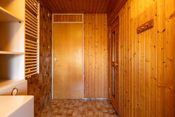 Op de eerste verdieping bevinden zich drie slaapkamers van goed formaat. De complete badkamer is een echte plus: voorzien van een douche, ligbad, wastafel én een sauna – uw eigen wellness aan huis.