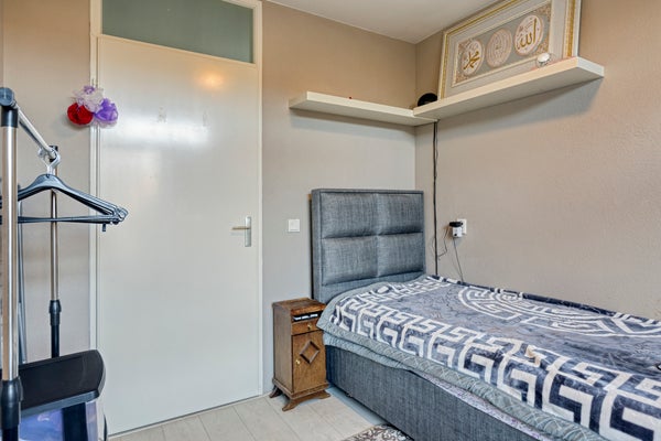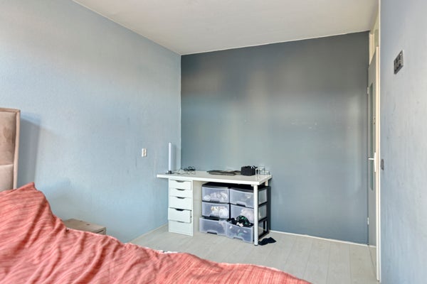 De slaapkamer op de tweede verdieping is licht en ruim opgezet en heeft een open indeling. De ruimte is multifunctioneel en geschikt als slaapkamer, werkkamer of hobbyruimte. Er is voldoende plek voor een bed, bureau en kast, en tevens vindt u hier de witgoedaansluitingen. Dankzij de fijne lichtinval is dit een aangename ruimte om te verblijven.