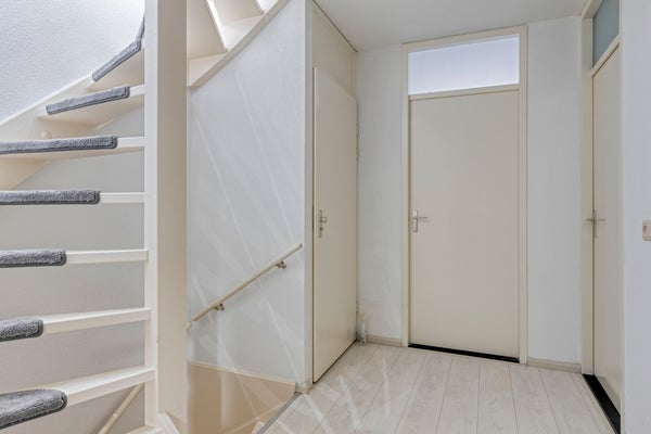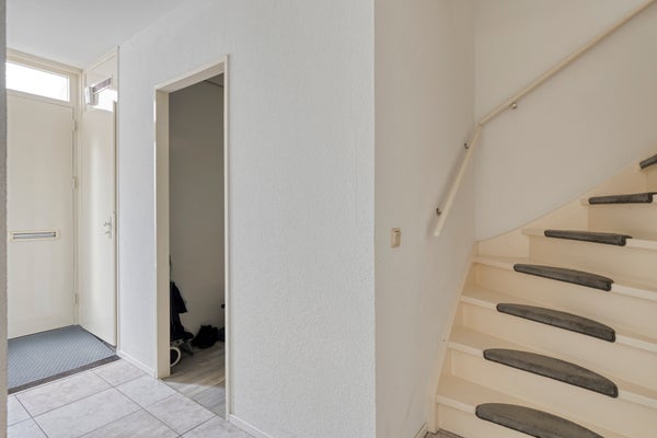 U betreedt de woning aan de straatzijde, waar voldoende parkeergelegenheid aanwezig is. Eenmaal binnen komt u in de hal, die direct een verzorgde en praktische indruk maakt. Vanuit hier heeft u toegang tot de toiletruimte, de berging, de trap naar de eerste verdieping en de keuken en woonkamer. Deze centrale ruimte verbindt alle vertrekken op een logische en prettige manier met elkaar en vormt een warm welkom in de woning.