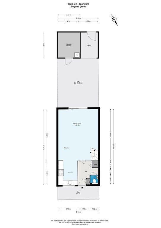 - Aanwezig (33 m², gelegen op het zuidwesten)