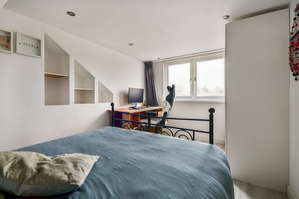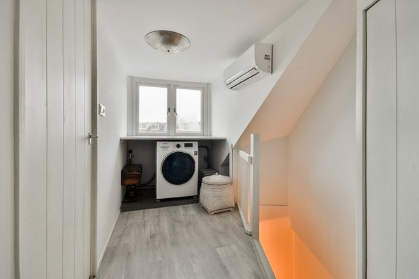 Via de vaste trap bereikt u de verrassend ruime en lichte tweede verdieping, dankzij de dakkapel een heerlijke multifunctionele ruimte. Deze verdieping leent zich uitstekend als extra slaapkamer, werk- of hobbykamer. Achter het knieschot zijn de cv-ketel (2023) en de wasmachine-aansluitingen netjes weggewerkt. In 2021 is bovendien een airconditioning geplaatst, waardoor het hier het hele jaar door comfortabel verblijven is.