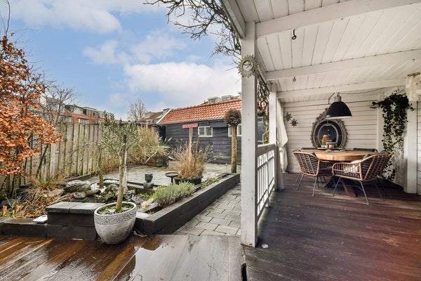 De woning beschikt over een bijzonder royale achtertuin, een zeldzaamheid in deze buurt. Gelegen op het zuidwesten, geniet u hier van veel zonuren gedurende de dag en een optimale lichtinval. Direct aan de woning bevindt zich een veranda met overkapping, een ideale plek om te ontspannen, te borrelen of lange zomeravonden buiten door te brengen.
