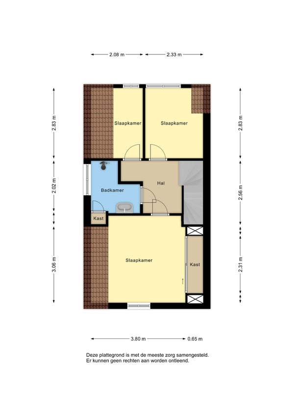 - De tussenwoning heeft een woonoppervlakte van 93 m² en beschikt over 4 kamers, waarvan 3 slaapkamers;