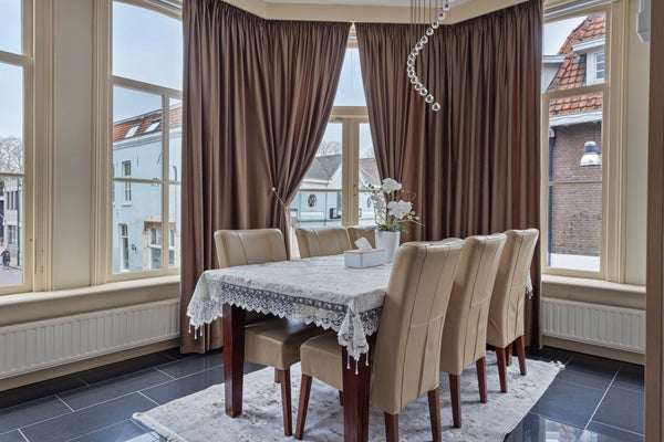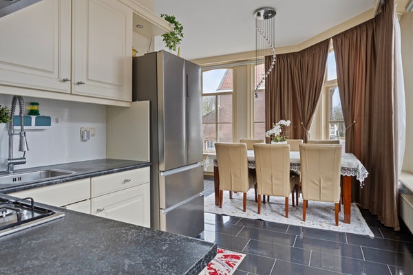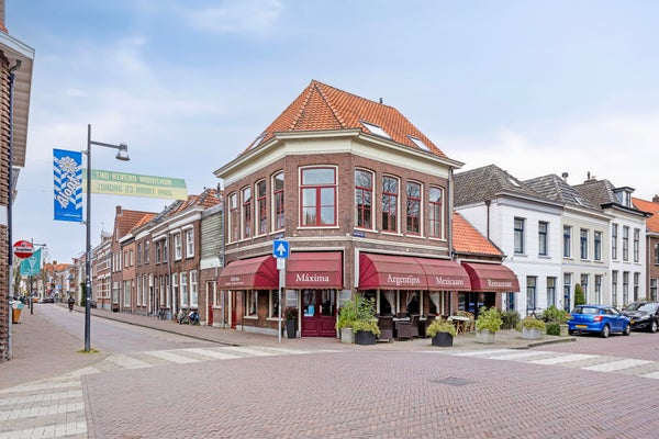 Deze monumentale bovenwoning ligt in de historische binnenstad en markeert het begin van een woon-/winkelstraat. Het pand heeft 4 slaapkamers en is een gemeentelijk monument in een beschermd stadsgezicht. Op de eerste verdieping bevindt zich een woonkamer van ca. 28 m² met een open keuken van ca. 10 m², een slaapkamer en een badkamer. Vanaf de kamer is er een prachtig uitzicht en er is een (overdekt) terras. Op de overloop zijn nog 3 slaapkamers en een vlizotrap naar de bergvliering. Het totale woonoppervlak is ca. 90 m², met een dakterras van ca. 20 m². Op de begane grond is een restaurant met eigen entree, bereikbaar vanuit de woning, en beschikt over een professionele keuken en toiletten. De woning kan eventueel samen met het restaurant gekocht worden.